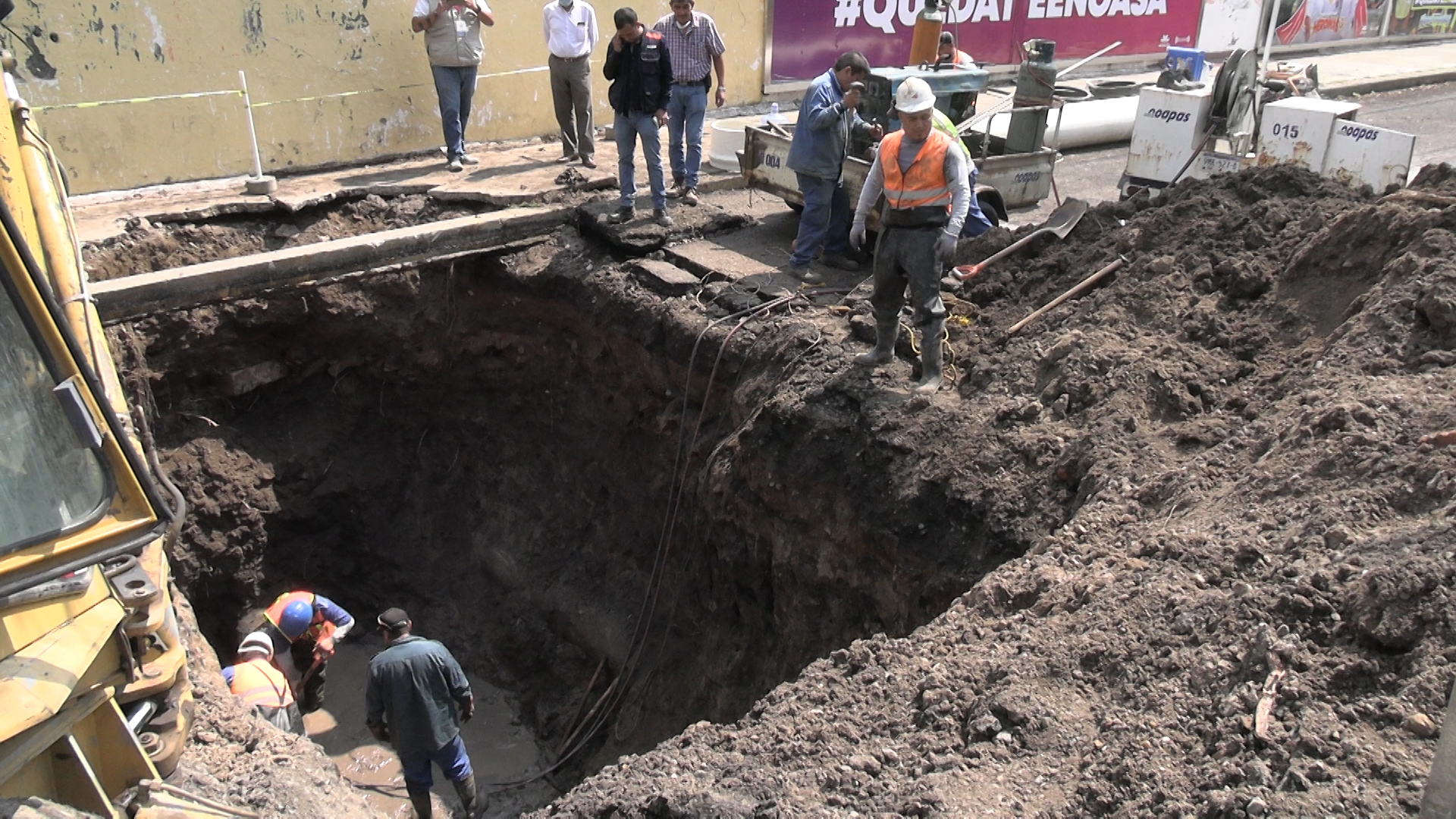 El jefe del departamento de distribución del OOAPAS Morelia, Iván González Arreguín señaló que se encuentran trabajando desde que se abrió el socavón alrededor de las 5:30 de la tarde.