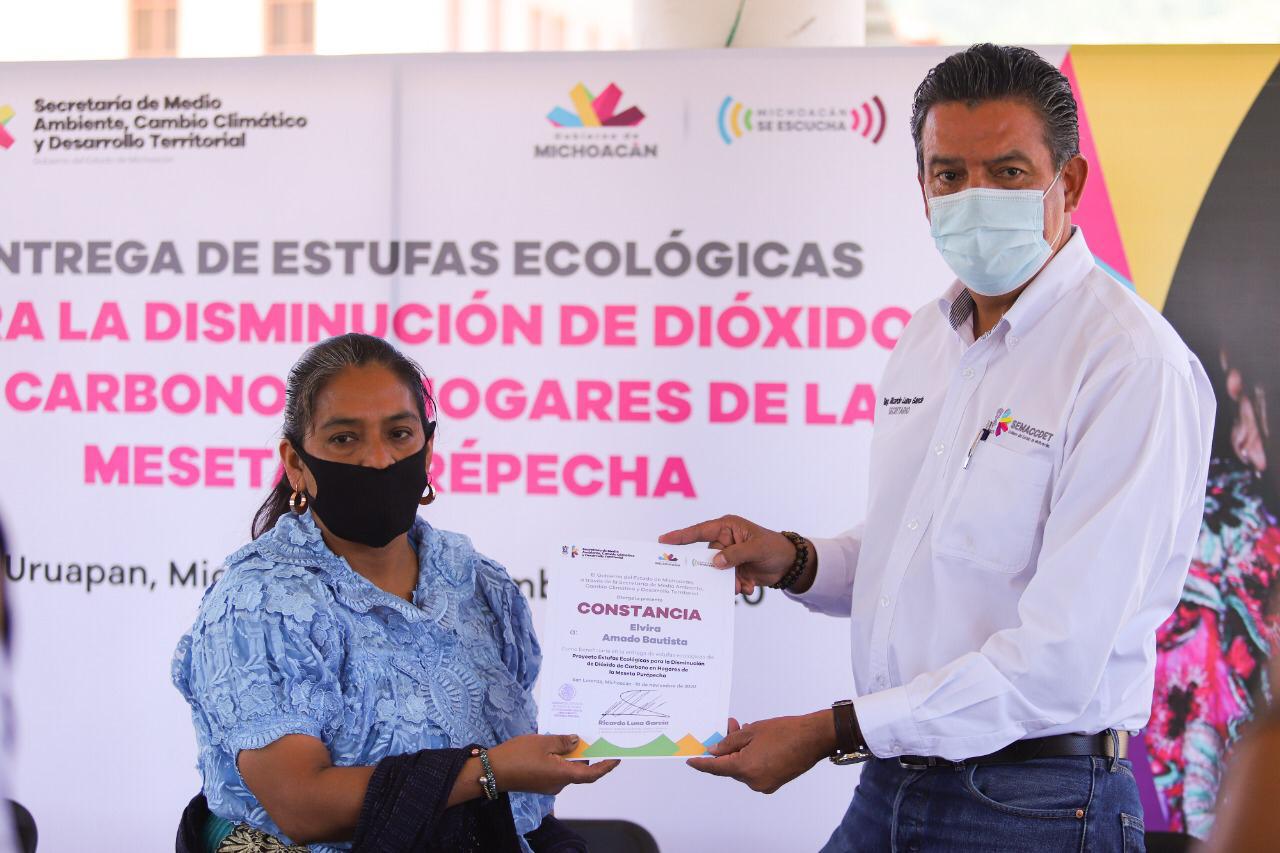 Al igual que ellas, otras 38 mujeres de la comunidad indígena de San Lorenzo, en el municipio de Uruapan, recibieron una estufa ecológica que ayudará no solo a mejorar las condiciones en las cuales cocinan, también abonará a disminuir la emisión de gases contaminantes hacia la atmósfera y para que ellas mismas no respiren tanto humo que con el paso de los años se convierte en una posible enfermedad pulmonar o respiratoria que afecta la salud, comentó el secretario de Medio Ambiente, Cambio Climático y Desarrollo Territorial.