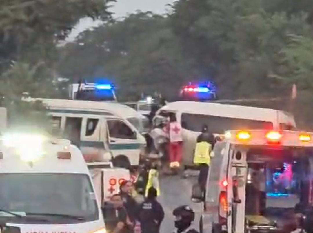 3 muertos y 14 lesionados tras choque frontal de combis, en Lázaro Cárdenas