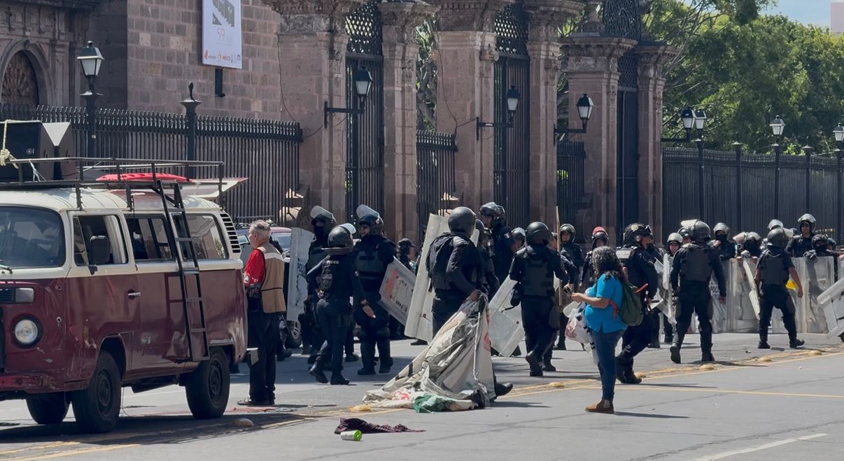 En enfrentamiento y actos vandálicos, derivó marcha del FNLS en Morelia