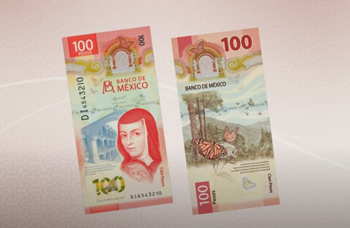 El Banco de México (Banxico), presentó el nuevo billete de 100 pesos, el cual tiene la imagen de la poetisa mexicana, Sor Juana Inés de la Cruz.