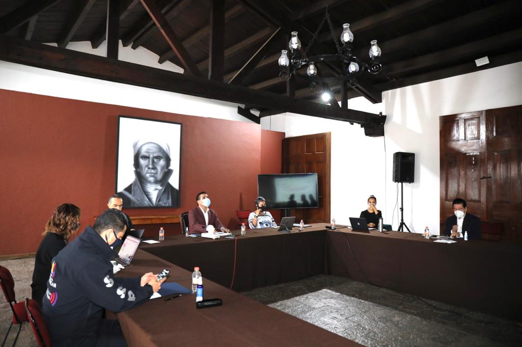 Morelia, Michoacán.- Con la finalidad de romper la cadena de contagios y disminuir la incidencia de COVID-19 en Michoacán, integrantes del Comité de Crisis, encabezados por el Gobernador del Estado, Silvano Aureoles Conejo, acordaron reforzar las brigadas de vigilancia sanitaria, principalmente en los municipios con máximo y alto riesgo de contagio.