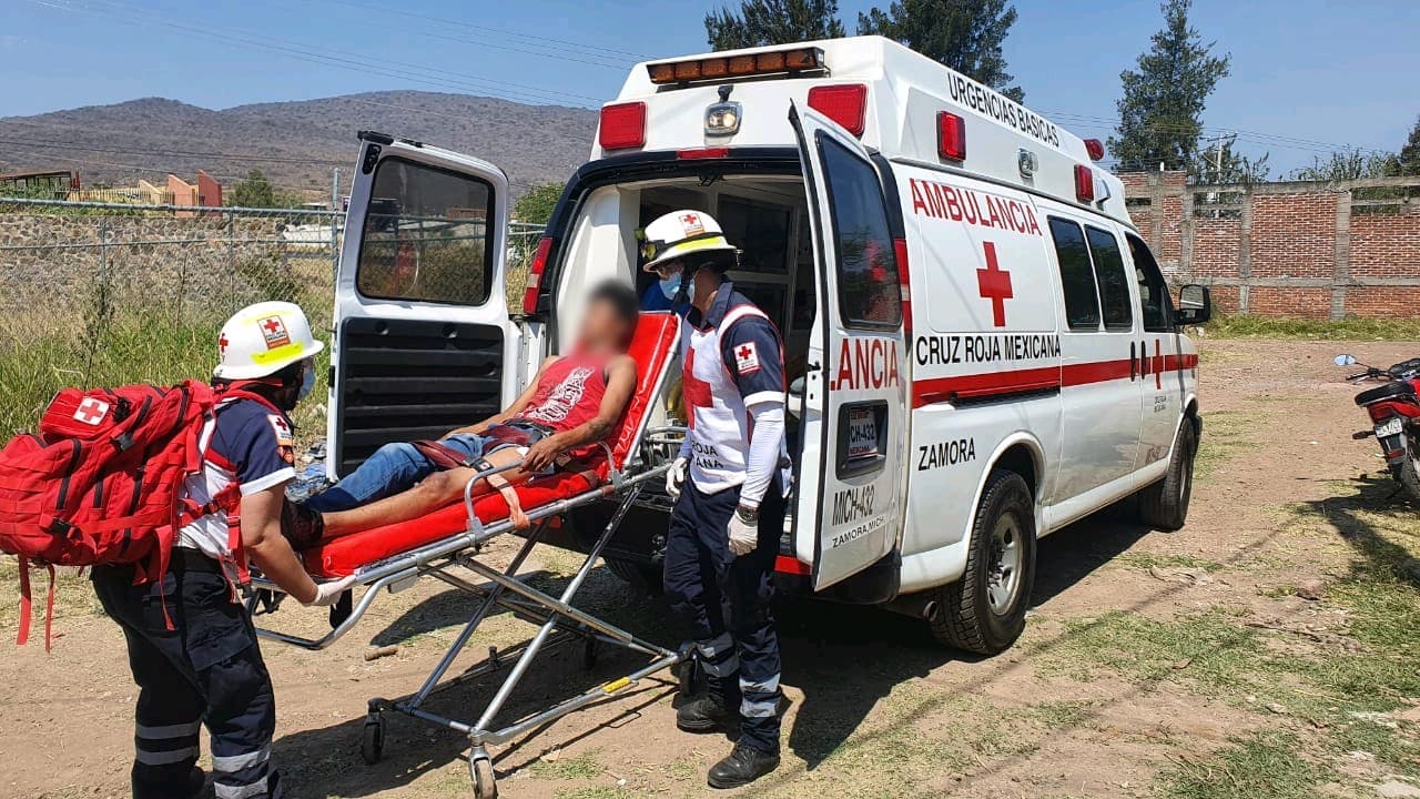 Minutos después arribaron los paramédicos de la Cruz Roja quienes le brindaron las primeras atenciones a Luis Armando L., M., de 16 años de edad, vecino de la colonia Trasierra, el cual fue canalizado a la sala de urgencias de un nosocomio de Zamora.