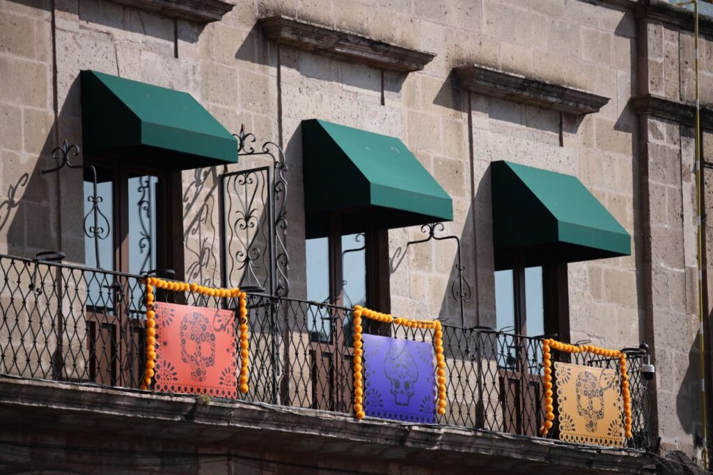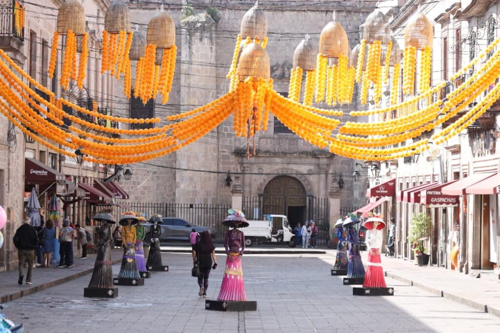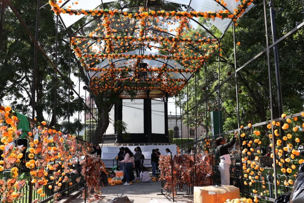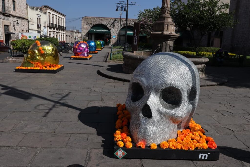 Adornan Morelia con altares, plantas de cempasúchil y cráneos monumentales
