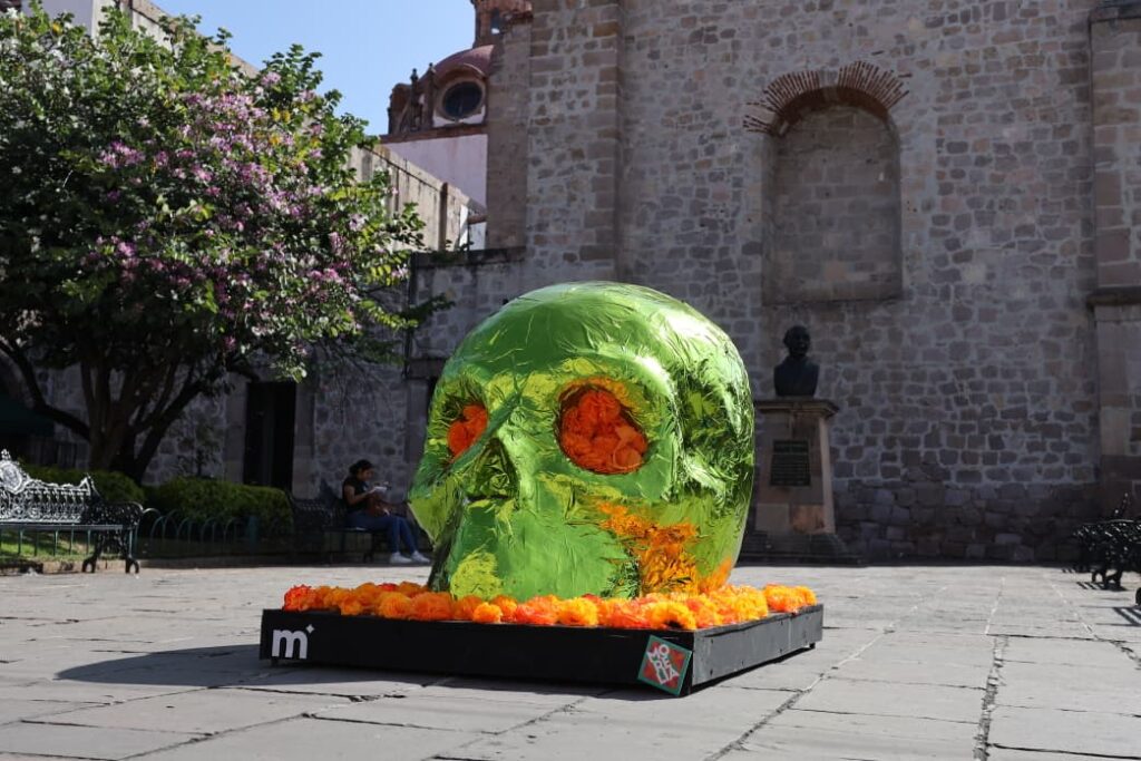 Asimismo, ya ha comenzado la instalación de cráneos monumentales, estatuas caninas, calaveras y catrinas en plazas públicas como la Natalio Vázquez Pallares (Mercado de Dulces), San Francisco, la cerrada de San Agustín, San Diego y el Acueducto, donde permanecerán hasta el 3 de noviembre.