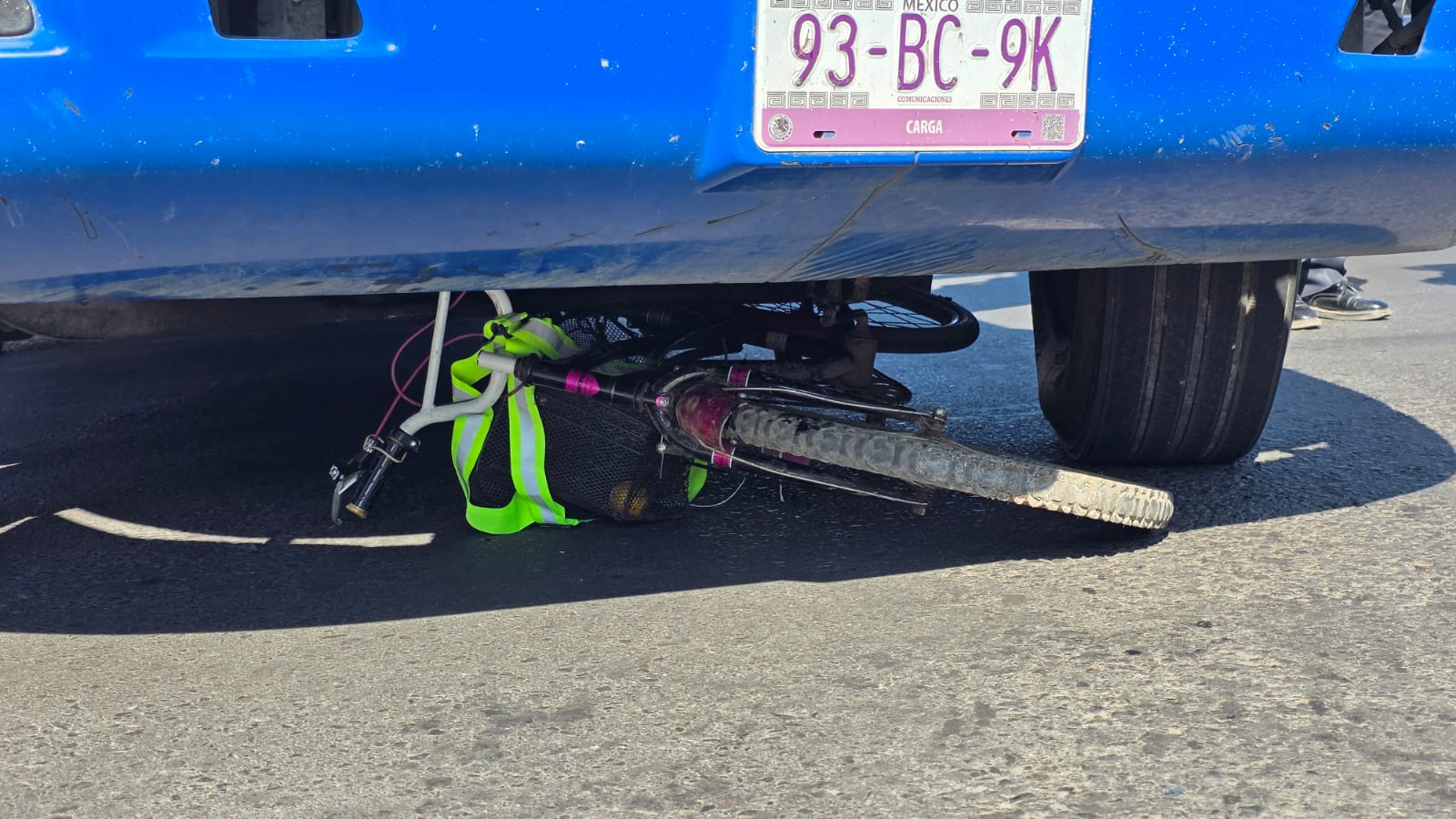 El afectado viajaba a bordo de una bicicleta color rosa con negro, misma que terminó debajo de la pesada unidad, una de la marca Kenworth color azul, con placas 93-BC-9K del servicio público federal, cuyo conductor fue requerido mientras se determinan responsabilidades.