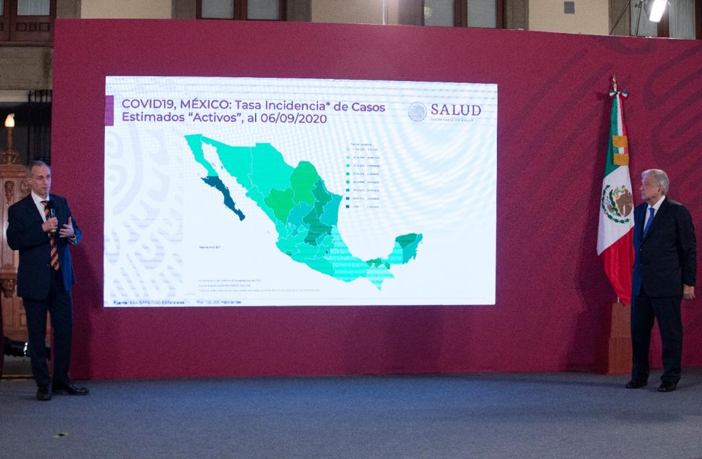 El presidente Andrés Manuel López Obrador, informó que la pandemia por el COVID-19 se mantiene sin rebrotes y va a la baja en México, por lo que refrendó su apoyo a los responsables de la estrategia sanitaria: el secretario de Salud, Jorge Alcocer Varela y el subsecretario, Hugo López-Gatell Ramírez.