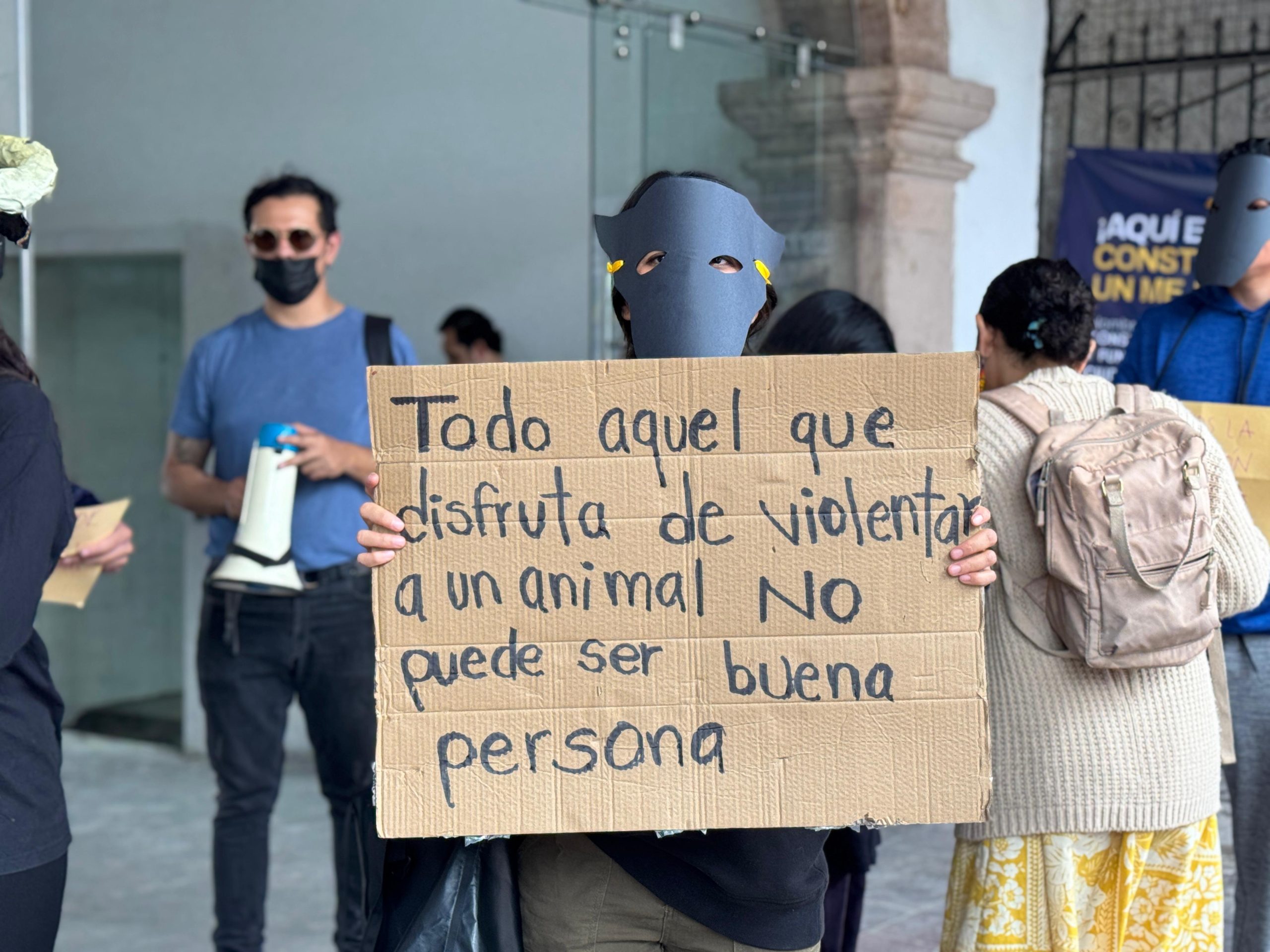Durante la protesta, los activistas pidieron a las autoridades municipales que se pronuncien públicamente en contra de las corridas de toros y que se respete el derecho de los ciudadanos a vivir en una ciudad libre de espectáculos que promuevan el maltrato animal.