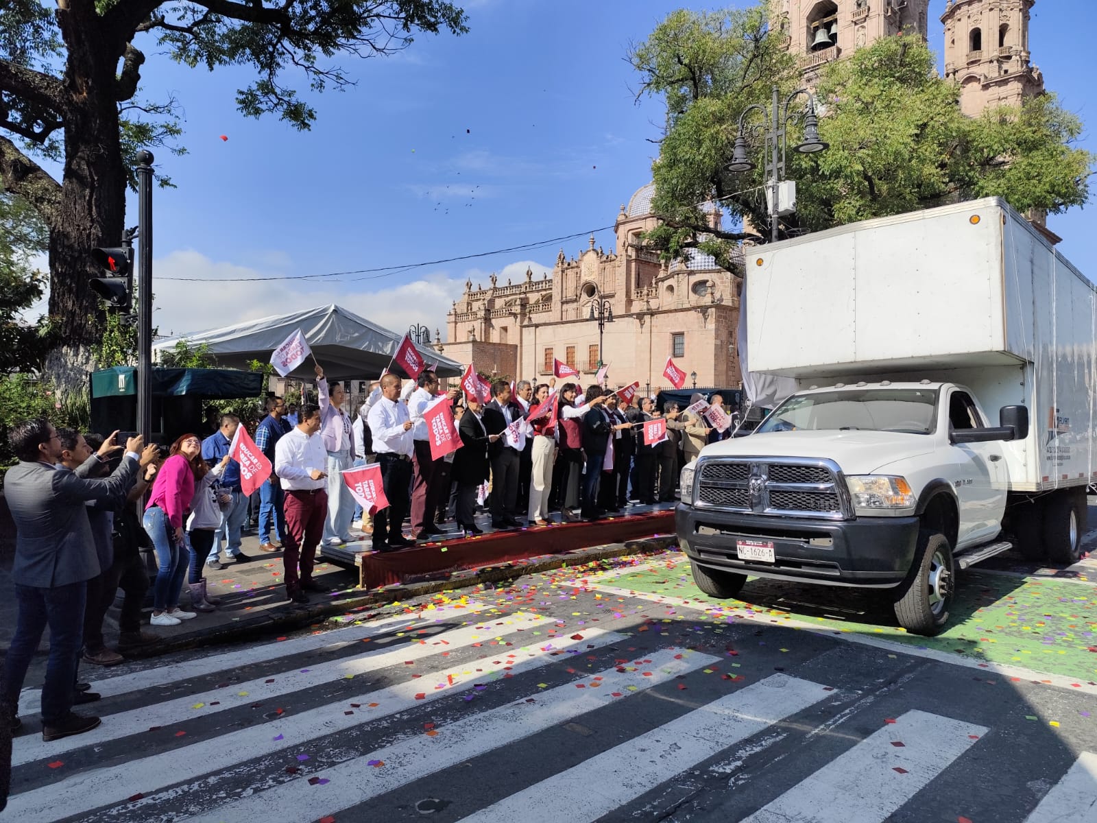 En la plaza Melchor Ocampo de Morelia, la secretaría de Educación del estado (SEE), dio el banderazo de arranque para la distribución de 6 millones 110 mil 222 libros de textos gratuitos que deberán entregarse a 1 millón 265 mil alumnos de todos los niveles de educación básica de los 113 municipios de Michoacán, antes del inicio del ciclo escolar el próximo lunes.