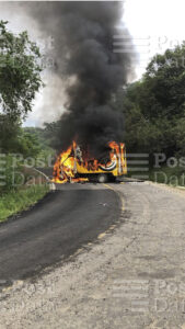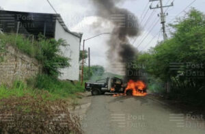 Arteaga, Mich.- Una patrulla de la Policía de Arteaga y un vehículo repartidor de la empresa de frituras Sabritas fueron retenidos, vandalizados y quemados por supuestos aspirantes a ingresar a las escuelas normales del estado, lo cual sucedió en la zona de la Escuela Normal que está en este municipio, según la información obtenida por este medio.