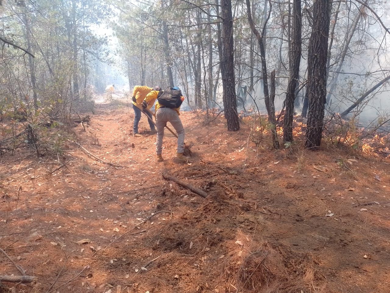 Brigadas de la Conafor, Cofom, Ayuntamientos, Protección Civil, Secretaría de Seguridad Pública (SSP), Protección Civil y voluntarios atienden en total ocho incendios forestales en la entidad en los municipios de Coalcomán (1), Tumbiscatío (1), Aguililla (1), Chinicuila (2), Erongarícuaro (1), Chilchota (1) y Charo (1).