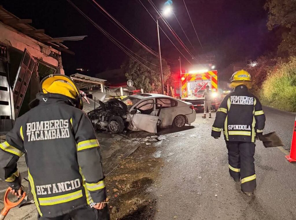 Tacámbaro, Mich.- Dos adolescentes resultaron lesionados tras el choque del automóvil en el que viajaban contra la fachada de un inmueble ubicado en la cabecera municipal de Tacámbaro, informaron fuentes policiales y de rescate.