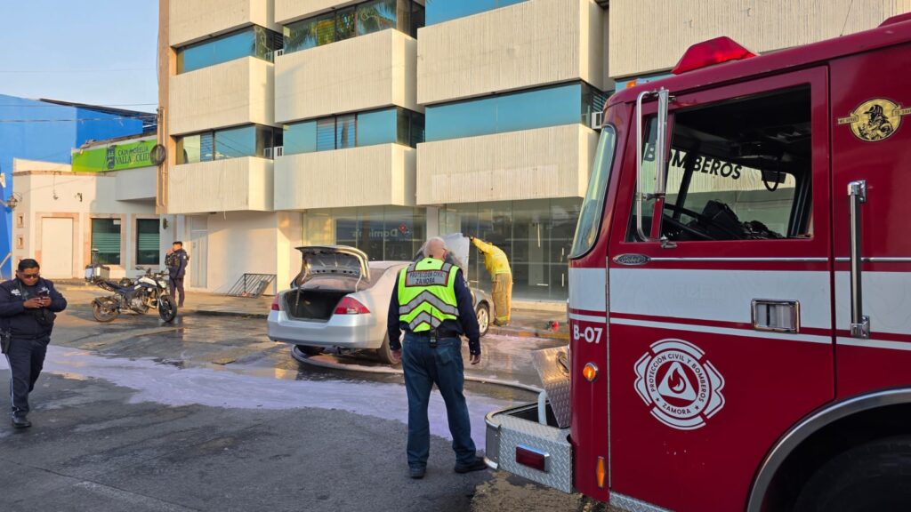 Zamora, Mich.- La mañana de este jueves un vehículo que se encontraba estacionado se incendió al parecer debido a una falla mecánica, según lo informado por fuentes policíacas.