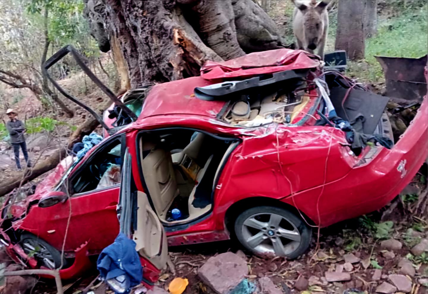 El hecho fue alertado a los patrulleros locales y paramédicos, quienes acudieron al referido sitio y hallaron a un hombre sin vida en el asiento del copiloto de un auto BMW, color rojo, con placa UDC24270, automotor que terminó destrozado junto a un árbol dentro la mencionada barranca.
