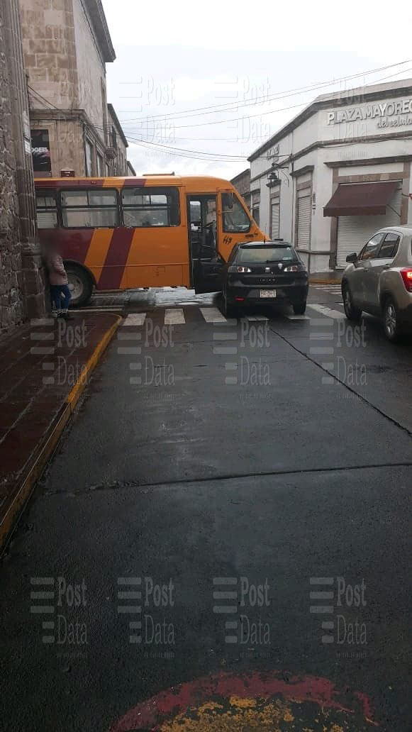 Morelia, Mich.- – Un auto compacto y un camión del transporte público urbano estuvieron involucrados en un choque que ocurrió la mañana de este jueves en el Centro Histórico de Morelia.