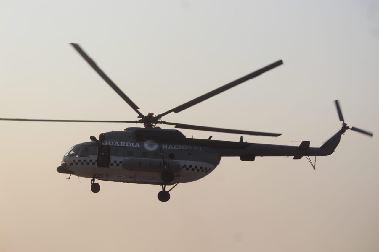 Además, en apoyo a estas acciones de control y combate se incorporó este viernes el helicóptero GN201 modelo MI-17 de la Guardia Nacional, cuyas actividades en aire contribuirán a que los trabajos en tierra de los brigadistas se vean fortalecidos y disminuyan los riesgos para los combatientes.