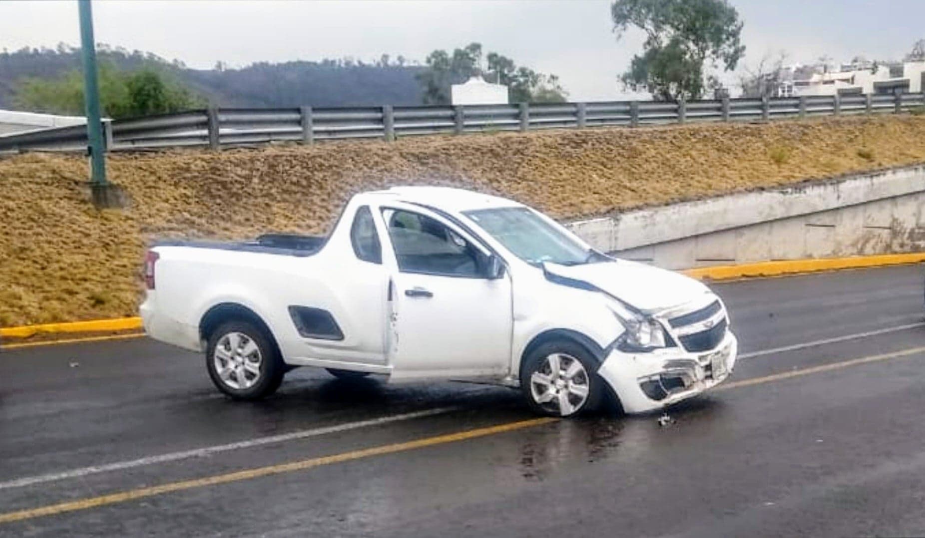 La unidad siniestrada es de la marca Chevrolet, tipo pick up, color blanco, con matrícula RK03161, cuyo ocupante se identificó como Vladimir, quien no padeció heridas.