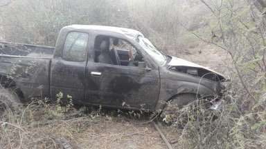 Tacámbaro, Mich.- Una camioneta Pick up se salió del camino y terminó averiada en el municipio de Tacámbaro, donde testigos de los hechos señalan que personas que iban en dicha unidad resultaron heridas, pero se fueron del sitio en sus propios medios antes de que llegaran los cuerpos de rescate.