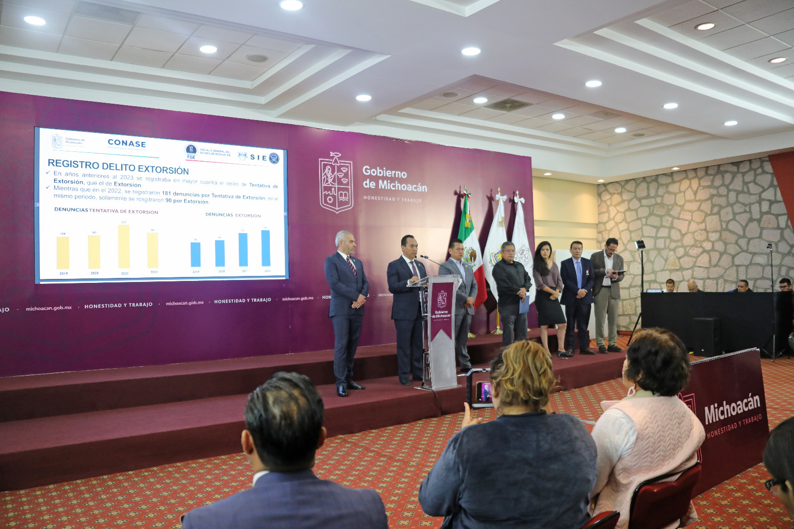 Tras la reforma al Código Penal del estado que incrementó las penas por el delito de extorsión y estableció la llamada “acción pública”, es decir, solo se requiere que la autoridad se entere de la posible comisión del ilícito para iniciar la investigación, el gobierno de Michoacán y la Fiscalía General del estado (FGE) informaron que se registró un aumento del 328% en el número de carpetas de investigación y pusieron como ejemplo de éxito la detención de 4 presuntos extorsionadores en Textil Cuitzeo.