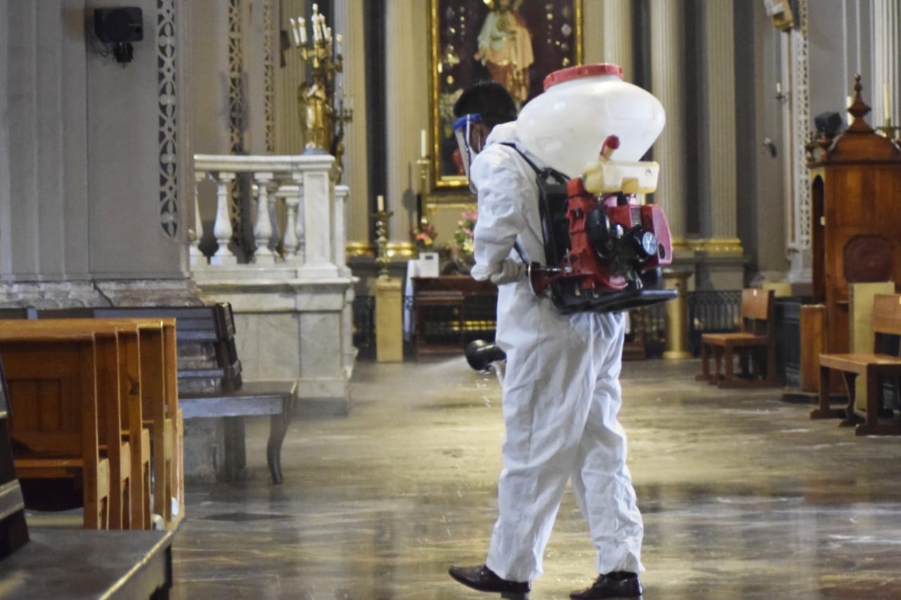 Por ello, con el fin de desinfectar las instalaciones internas y externas del reciento católico para garantizar como área libre de COVID-19, en coordinación con autoridades municipales, este lunes se llevaron a cabo acciones de sanitización de la Catedral de Morelia y de las oficinas anexas.