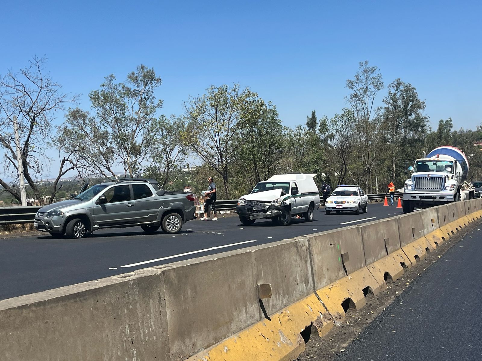 Se apreció que una de las unidades involucradas es de la marca Ram, color gris, cuya retaguardia fue impactada por una camioneta blanca.