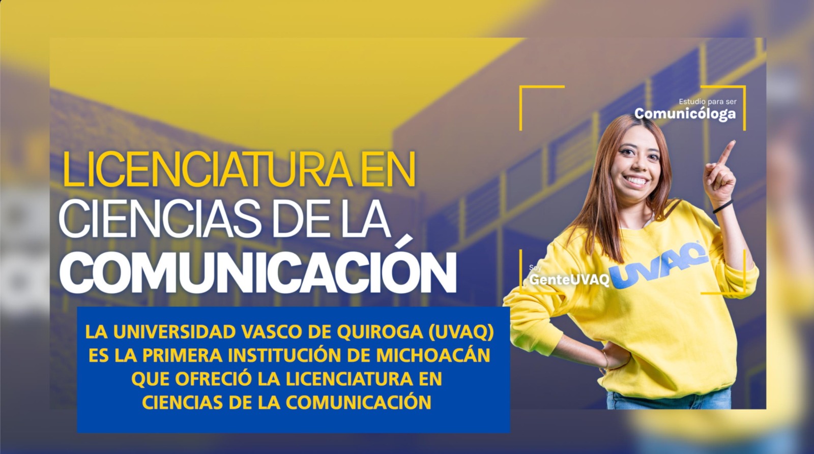 La Universidad Vasco de Quiroga (UVAQ) es la primera institución de Michoacán que ofreció la Licenciatura en Ciencias de la Comunicación, dirigida a personas con inquietud por el manejo de la información, investigación e impacto social, donde no solo adquieren conocimientos teóricos, sino también habilidades técnicas y creativas que demanda el mundo de la comunicación, desde la interpersonal, hasta la masiva.