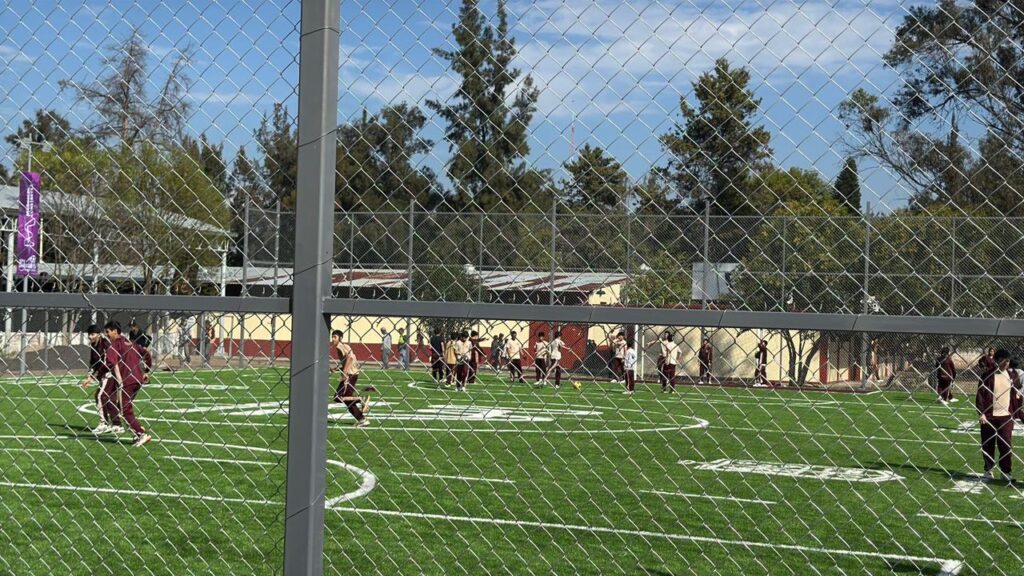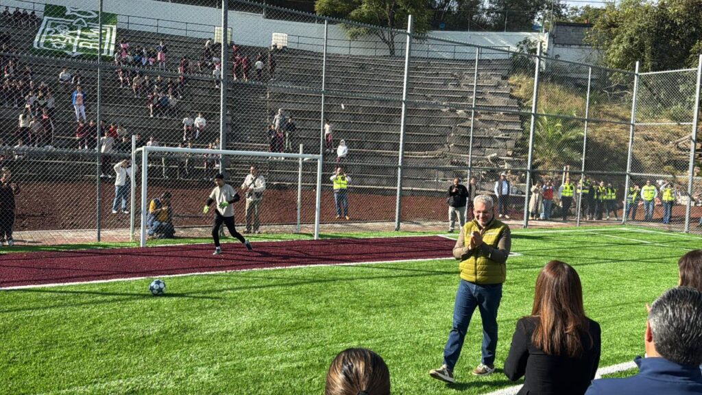 “Hace un año y medio estuve aquí y nos comprometimos a rehabilitar el área deportiva de la Secundaria Federal No. 2. Hoy entregamos dos canchas de futbol 7. Quiero decirles que no solo estamos construyendo espacios deportivos, también edificaremos 10 nuevas preparatorias, 10 bachilleratos tecnológicos, como parte del Plan Michoacán por la Paz y la Justicia que la presidenta Sheinbaum nos ha encargado impulsar”, expresó.