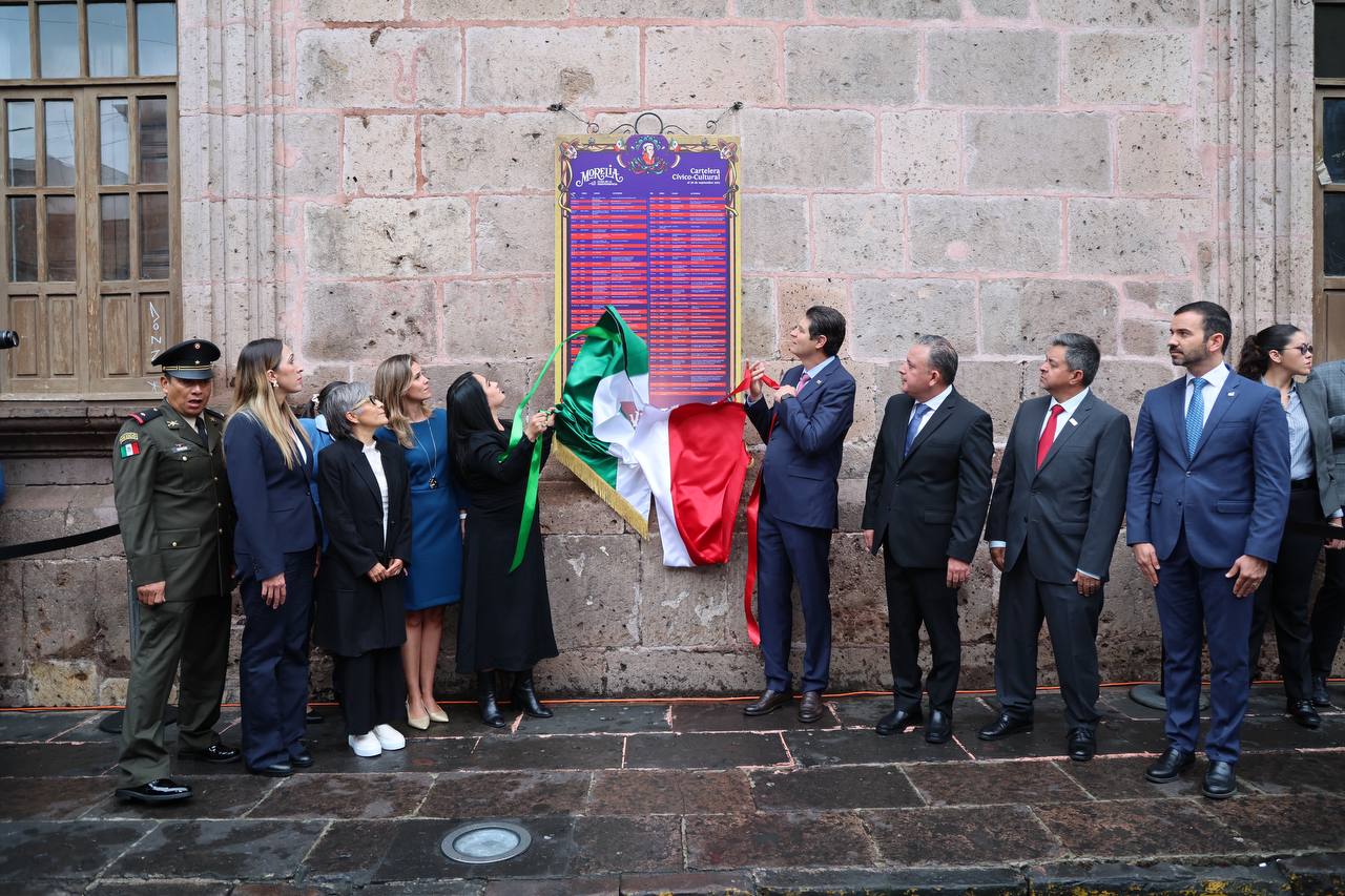 Desde Palacio Municipal, autoridades estatales y municipales, develaron los carteles instalados en la zona centro de la ciudad, donde se detallan las actividades con que la capital michoacana celebrará las fiestas septembrinas.