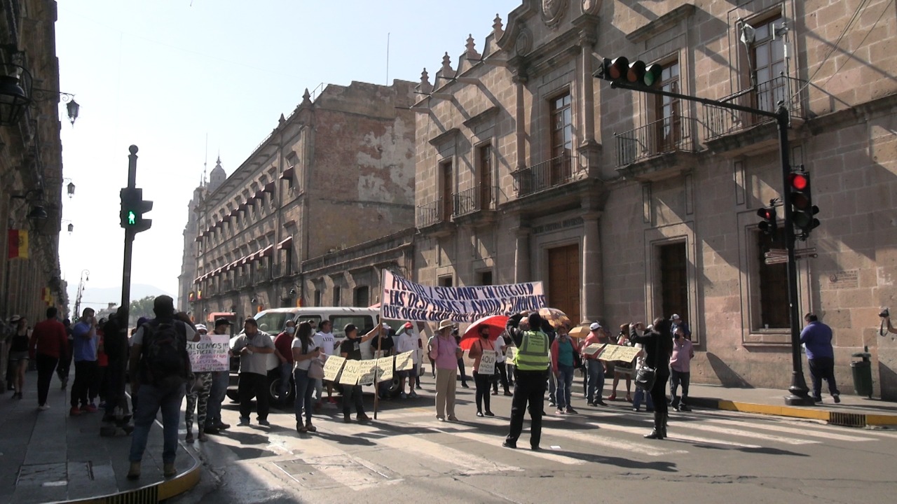 En el marco del Día del trabajador universitario, empleados administrativos, jubilados, de intendencia y manuales del Sindicato Único de Empleados de la Universidad Michoacana (SUEUM) cerraron la avenida Madero a partir de las 10 de la mañana como protesta por el incumplimiento de pagos de la Universidad Michoacana.