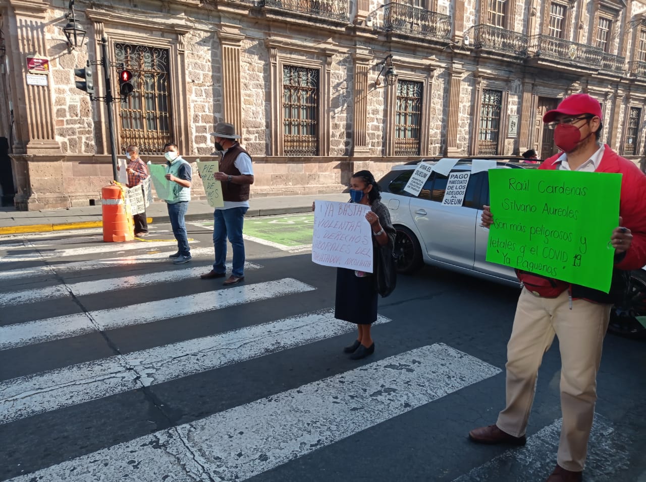Integrantes del Sindicato Único de Empleados de la Universidad Michoacana (SUEUM) cerraron desde la 9 de la mañana hasta las 12 del día la avenida Madero, entre las calles Galeana y Abasolo, para exigir el pago del 75% de su aguinaldo a las autoridades de la Universidad Michoacana de San Nicolás de Hidalgo (UMSNH).