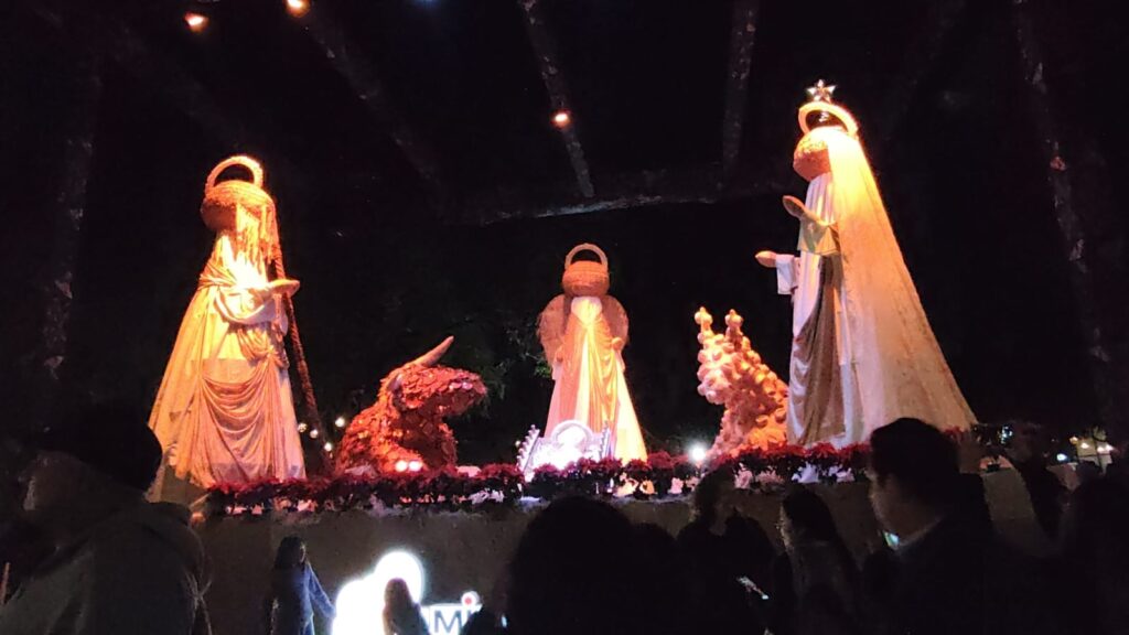 Tras breve recorrido, el mandatario también arrancó la iluminación del nacimiento monumental que adornará los jardines del Centro de Convenciones con piezas de hasta 5 metros de altura, elaboradas de chuspata y palma, provenientes de Ihuatzio, con vestimenta hecha totalmente a mano.
