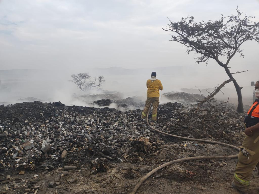 “En este basurero llevamos aproximadamente 11 días, todavía se puede llevar unos 8 días más; estamos a un 70% pero es una labor ardua porque hay que estar removiendo, enfriando, y echando capas de algún material para sofocarlo”.