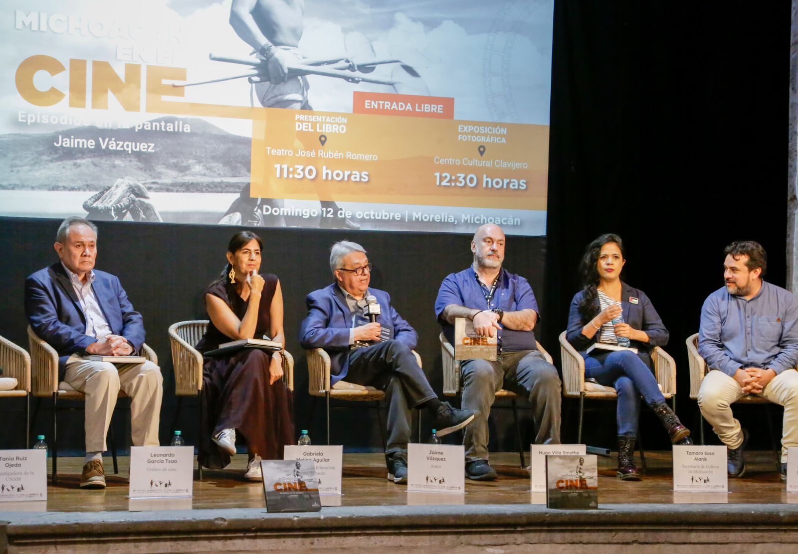 El libro coeditado con Huella Digital fue presentado en el teatro José Rubén Romero, donde participaron la secretaria de Cultura, Tamara Sosa; el productor de cine, Hugo Villa Smythe; el crítico de cine, Leonardo García; la directora deneral del FICM, Daniela Michel; y el director de Cuarta República, Carlos Márquez.