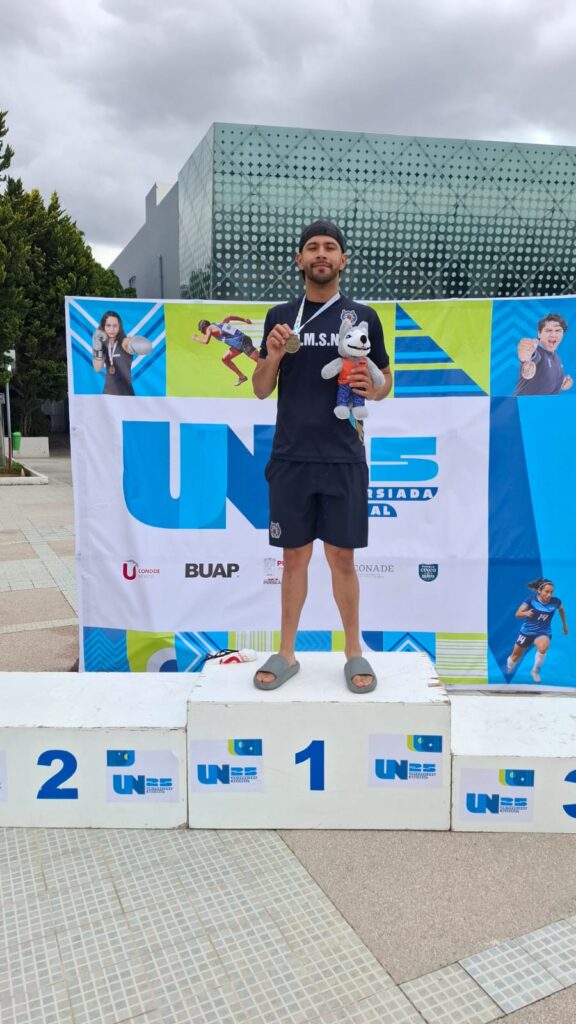 La cosecha comenzó con el nadador Óscar Eduardo Vasquez Pedraza, estudiantes de la carrera de Ingeniería en Biotecnología, quien subió a lo más alto del pódium en los 50 metros dorso, al obtener medalla de Oro.