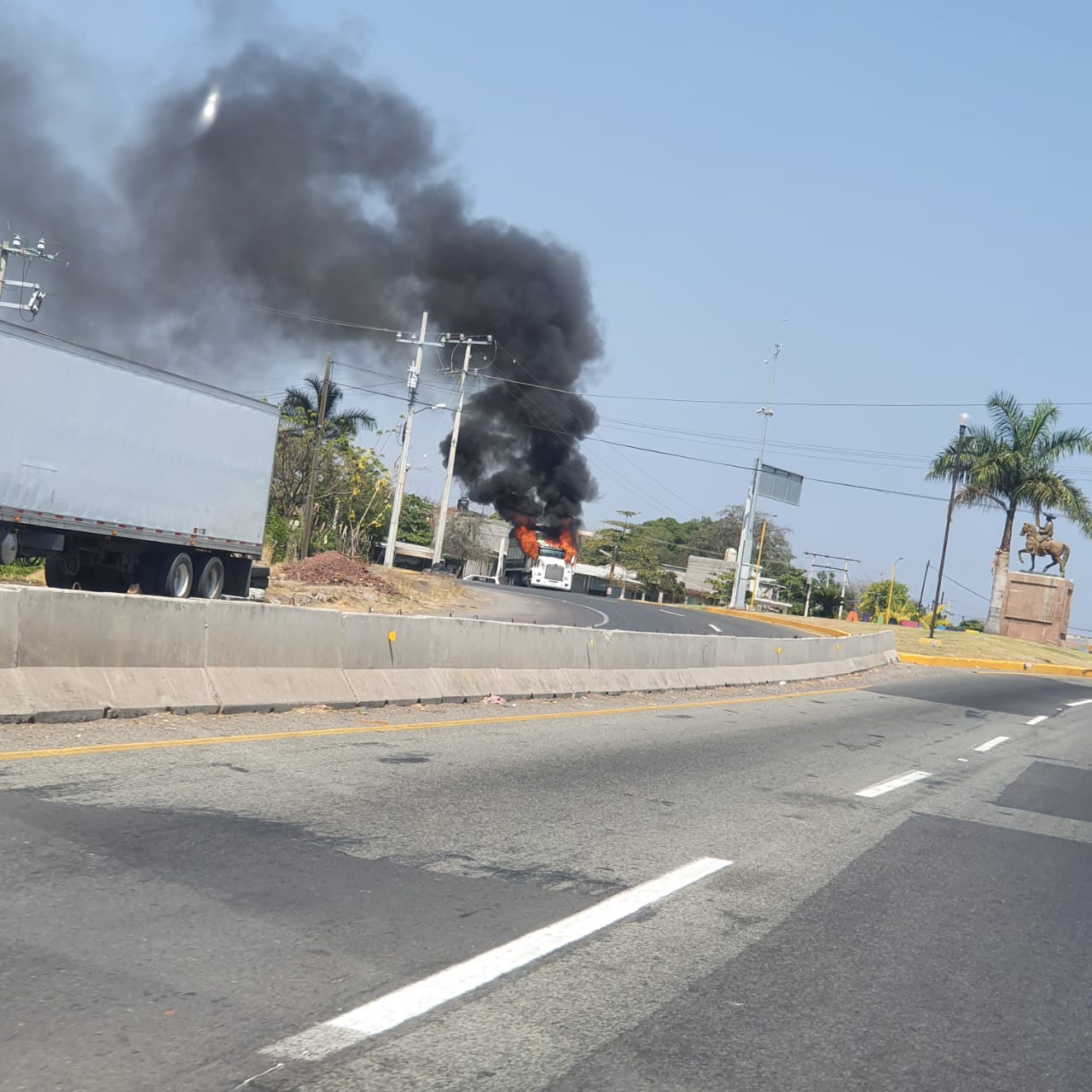 Posteriormente, individuos desconocidos se apoderaron de dos tráileres y de un autobús de pasajeros y también los incendiaron, pero ahora en la glorieta de Cuatro Caminos, los responsables de este acto delincuencial usaban motocicletas y estaban armados, mismos que después de vandalizar las unidades huyeron a toda velocidad, a decir de testigos que hablaron con la Policía.