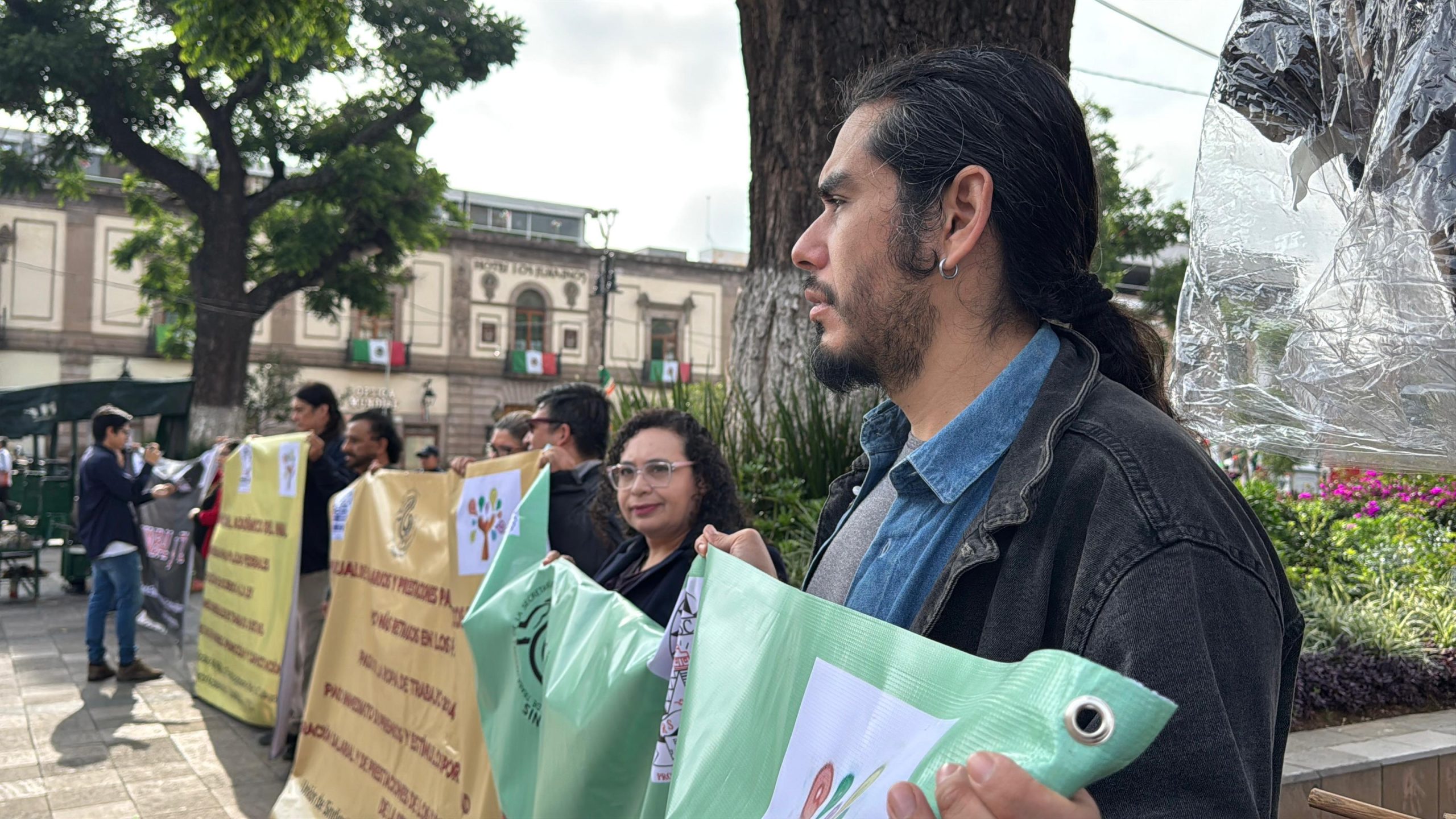 Trabajadores del Centro de Formación Artística “Miguel Bernal Jiménez”, Bachillerato de Artes y Humanidades dependiente del Instituto Nacional de Bellas Artes y Literatura (INBAL), protestaron frente a Palacio de Gobierno para exigir el cumplimiento de sus demandas laborales.