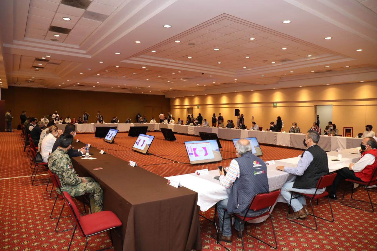 Morelia, Michoacán.- Previo al comienzo de la segunda etapa de la Nueva Convivencia, el Comité de Seguridad en Salud se reunió para hacer un análisis y estudiar los escenarios en los diferentes municipios de Michoacán.