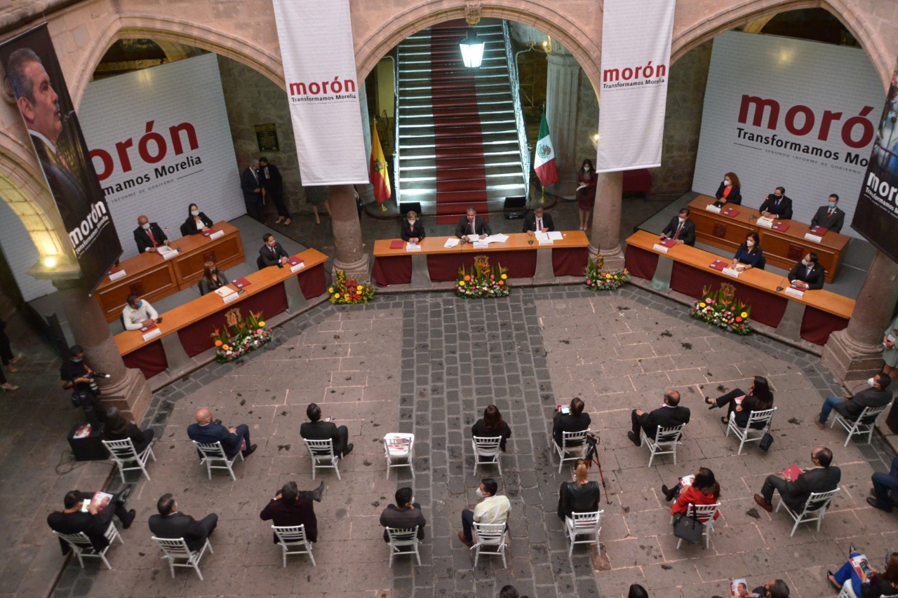 Este viernes, el presidente municipal de Morelia, Raúl Morón Orozco entregó su segundo informe de gobierno en Sesión Solemne de Cabildo en el Palacio Municipal, dónde los regidores de partido aprobaron la gestión moronista, mientras los independientes mostraron su preocupación por la falta de avances en la ciudad.