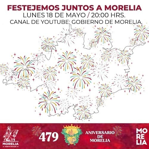 A partir de las redes sociales de la dependencia se podrá disfrutar el evento denominado “479 Aniversario de MoreliaDeMisAmores”, el cual contiene un programa especial de música, historia, capsulas y felicitaciones a la ciudad de la cantera rosa.