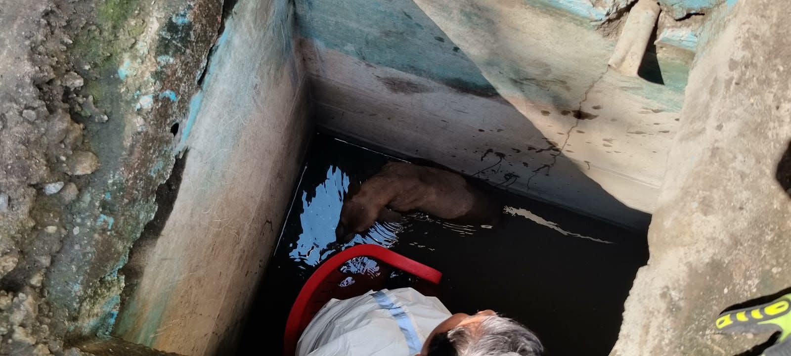 El incidente ocurrió en la calle Serapio Rendón. En el sitio, los propietarios del canino informaron a las autoridades que la mascota se encontraba dentro de un predio cuando, de manera accidental, cayó al interior del aljibe, quedando atrapada.