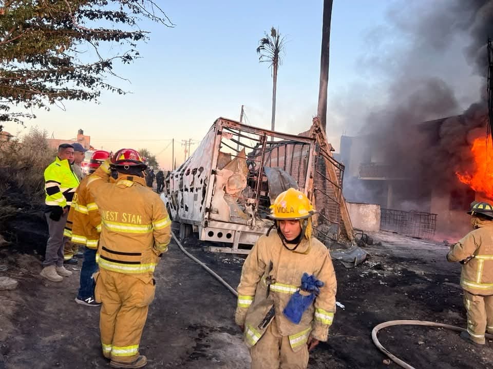 La Piedad, Mich.- Una potente explosión derivó en un incendio de grandes proporciones en la colonia El Cuitzillo en La Piedad, lo que dejó como saldo dos personas con quemaduras de gravedad, severos daños en al menos nueve viviendas y la pérdida total de ocho vehículos, además de una intensa movilización de corporaciones de auxilio.