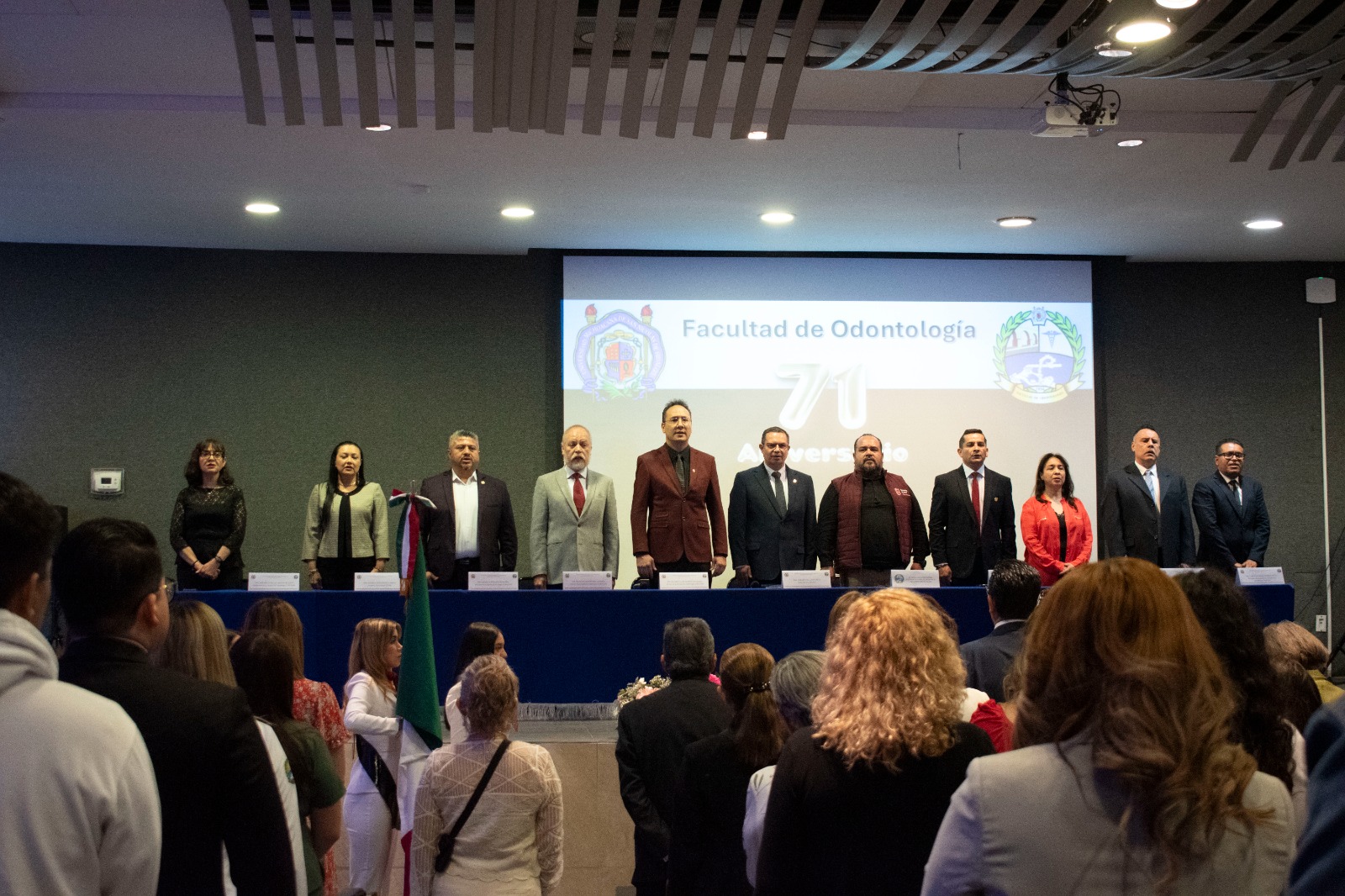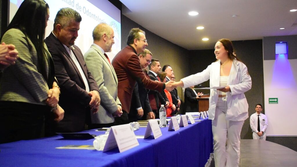 Con la representación de la rectora Yarabí Ávila González, el funcionario felicitó a la comunidad y comentó que desde el ámbito académico, la Facultad de Odontología ha crecido, al referir que se incrementó el número de profesoras y profesores con el reconocimiento de Perfil Deseable dado por la Secretaría de Educación Pública (SEP), además este año se cuadruplicó el número de académicos y académicas de tiempo completo que recibirán un estímulo por su desempeño, “esto es algo que nunca se había dado en la facultad”.