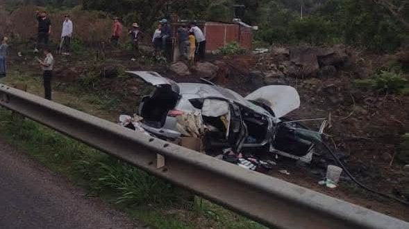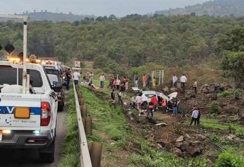 Uruapan, Mich.- Cuatro integrantes de una familia que viajaban en una camioneta resultaron lesionadas luego de que su unidad se saliera del camino y cayera a un desnivel en la autopista Uruapan-Pátzcuaro, cerca de la planta de Pemex.