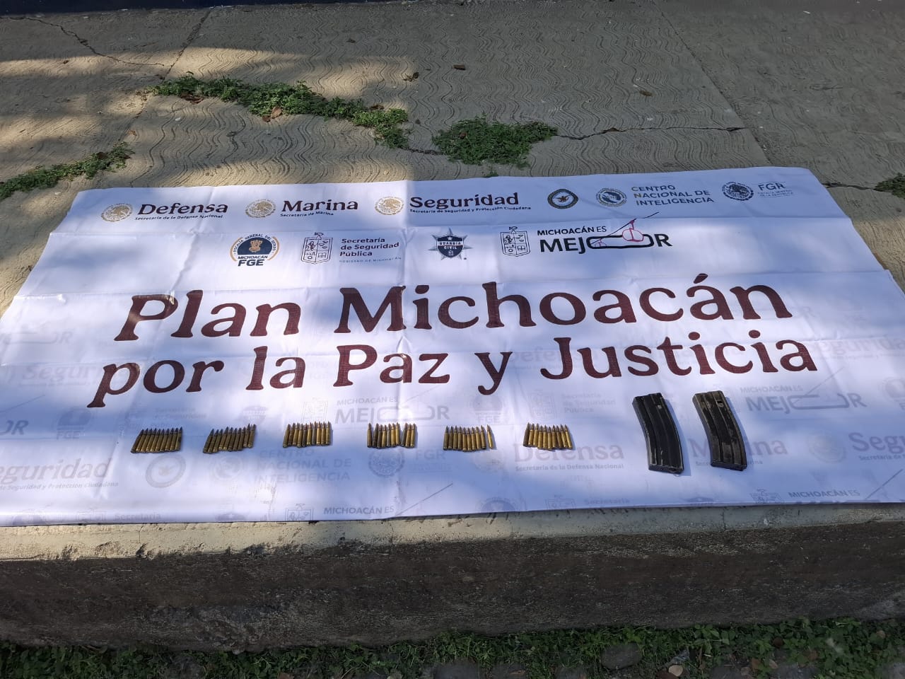 Apatzingán, Mich.- Elementos de la Secretaría de la Defensa Nacional (Defensa) y de la Guardia Nacional, atendieron el reporte de enfrentamientos armados entre células delictivas en una zona serrana de Apatzingán, donde capturaron a un extranjero herido.