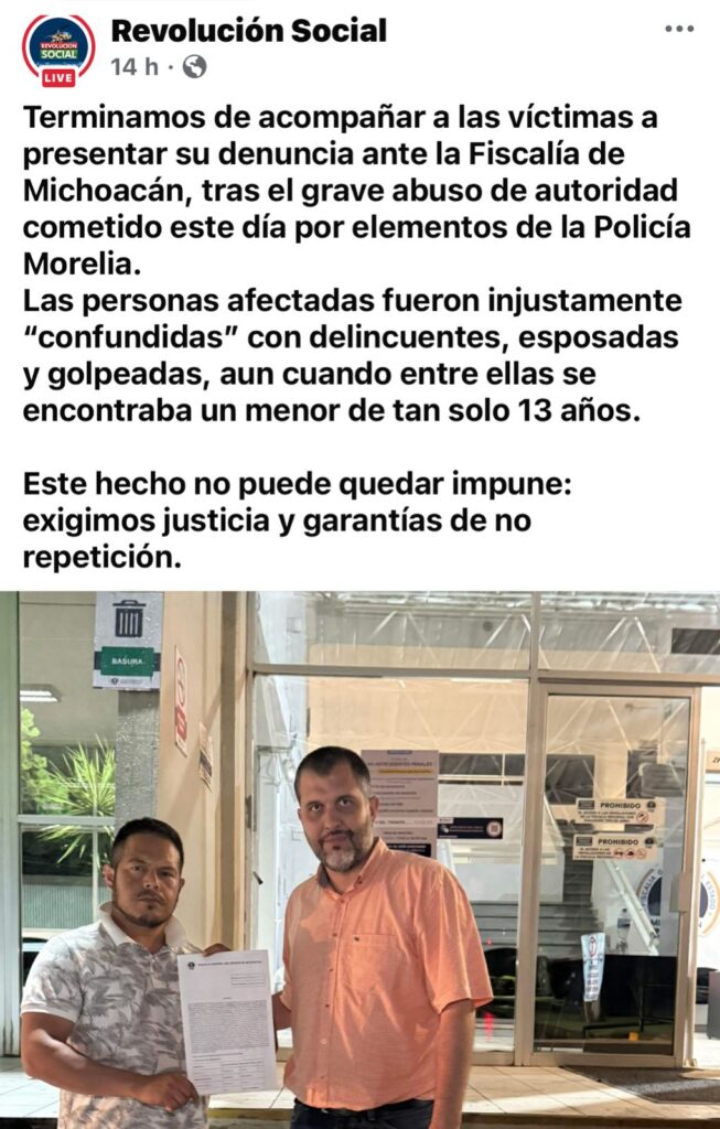 Este domingo, la página Revolución Social reportó un enfrentamiento armado en una tienda comercial de la avenida Torreón Nuevo; posteriormente, en la misma página se denunció un abuso policial contra un adulto y un menor de 13 años, quienes presentaron una denuncia ante la Fiscalía General del Estado por una golpiza presuntamente propinada por la Policía Morelia.