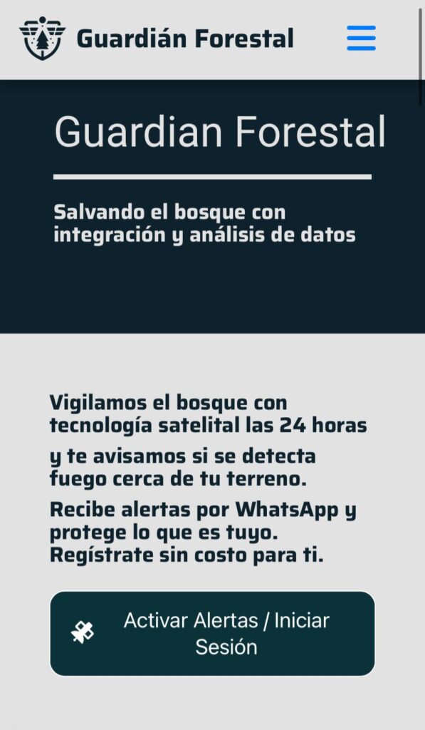 Para registrarse solo es necesario entrar al sitio web www.guardianforestal.com e ingresar nombre, correo electrónico y número telefónico para crear una cuenta. Se deberá trazar en el mapa el polígono de la propiedad o zona de interés para darlas de alta, activar la alarma y listo. Recibirá un mensaje de confirmación vía WhatsApp, minutos después del registro.