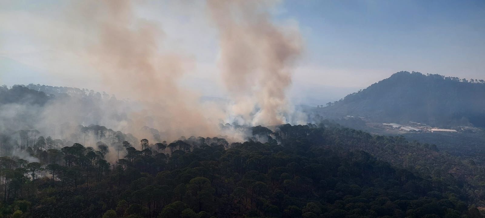 Dificultan las acciones de combate las altas temperaturas, vientos cambiantes, zona de malpaís; hacen que el avance del fuego, además de propagarse por el arbolado, avance de manera subterránea, por la gran acumulación de material combustible del área que no se había incendiado en más de 10 años.