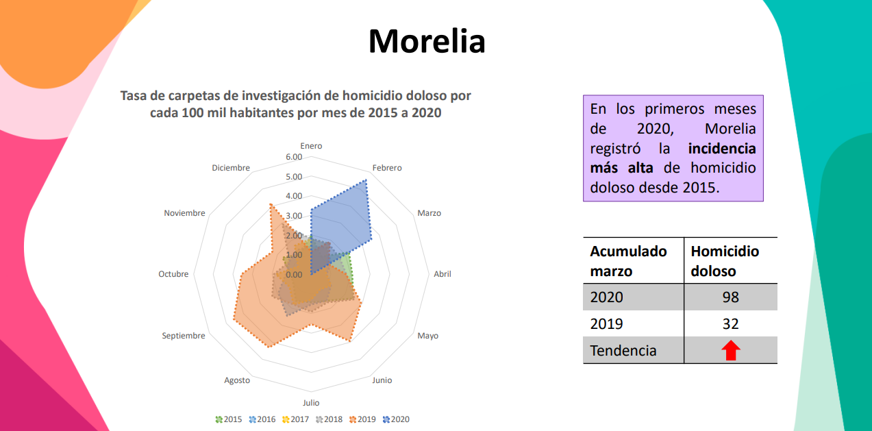 “Aquí cuando se los estamos desmenuzando por ciudad se empieza a ver qué tan complicado está la cosa y la verdad es muy preocupante la tendencia que les estamos presentando, no estamos hablando de que fue un incremento del 5, 10, 15%, estamos hablando que es un incremento del 300% en Morelia”