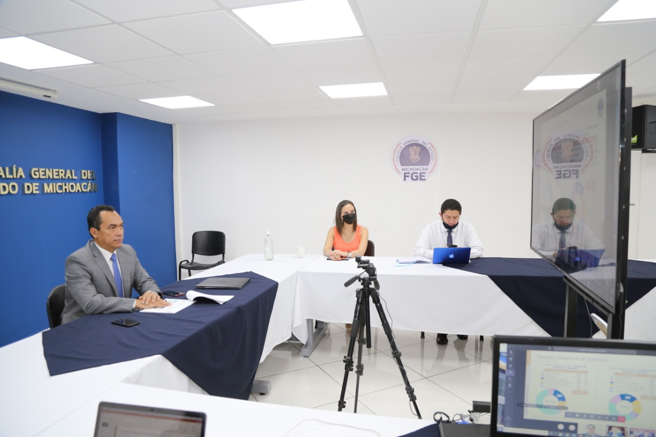 A través de videoconferencia, el Fiscal General reconoció el esfuerzo que realizan las y los servidores públicos, no obstante la contingencia sanitaria, para llevar a cabo las acciones que se encuentran trazadas en el PPD y que están relacionadas con el fortalecimiento de las tareas de investigación y persecución de delitos; así como la implementación de mecanismos alternativos de solución controversias, de acuerdo al Código Nacional de Procedimientos Penales.