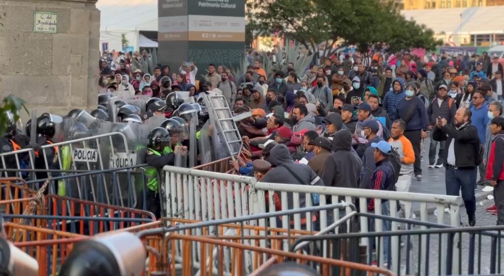 Integrantes de la CNTE intentan ingresar a Palacio Nacional, previo a la mañanera
